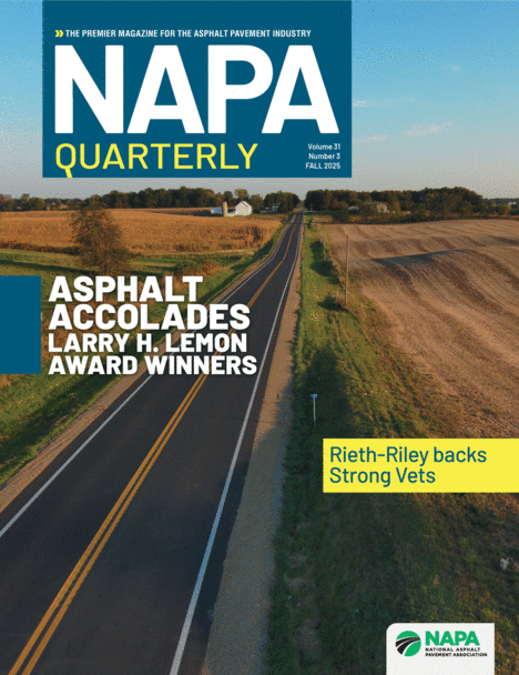 NAPA Quarterly magazine provides readers – members, non-members, decision makers, and road owners – with updates on asphalt pavement technology and innovations; best practices in plants, paving, and business operations; issues of importance industry-wide; and NAPA's strategic initiatives. Digital and/or print subscriptions are available to government agencies, State Asphalt Pavement Associations, and other stakeholders. Subscribe Now
