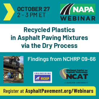 This webinar will present findings from NCHRP project 09-66, Mechanical Properties of Laboratory-Produced Recycled Plastic Modified Asphalt Binders and Mixtures. The study provided guidance on selecting post-consumer recycled (PCR) plastics, laboratory procedures for adding PCR plastics in asphalt mixtures via the dry process. Attendees will gain insight to the global issue of waste plastics, learn recommendations on the types of recycled plastics that can be used in asphalt paving mixtures, and discover ongoing field studies to assess the effects of recycled plastics on pavement performance.