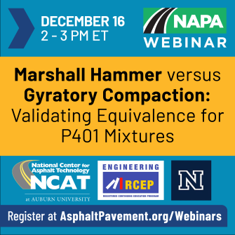 This webinar presents the research conducted by NCAT and UNR to determine the equivalent number of gyrations in a Superpave Gyratory Compactor to achieve the same density obtained by 50-blow and 75-blow compaction with a Marshall hammer.